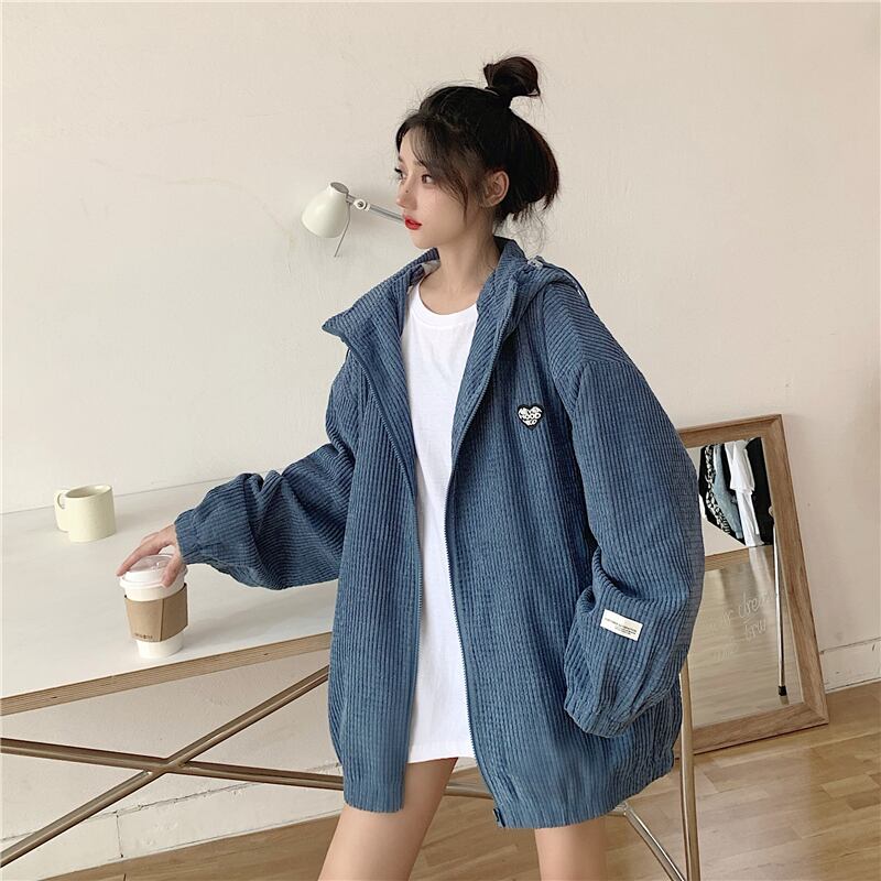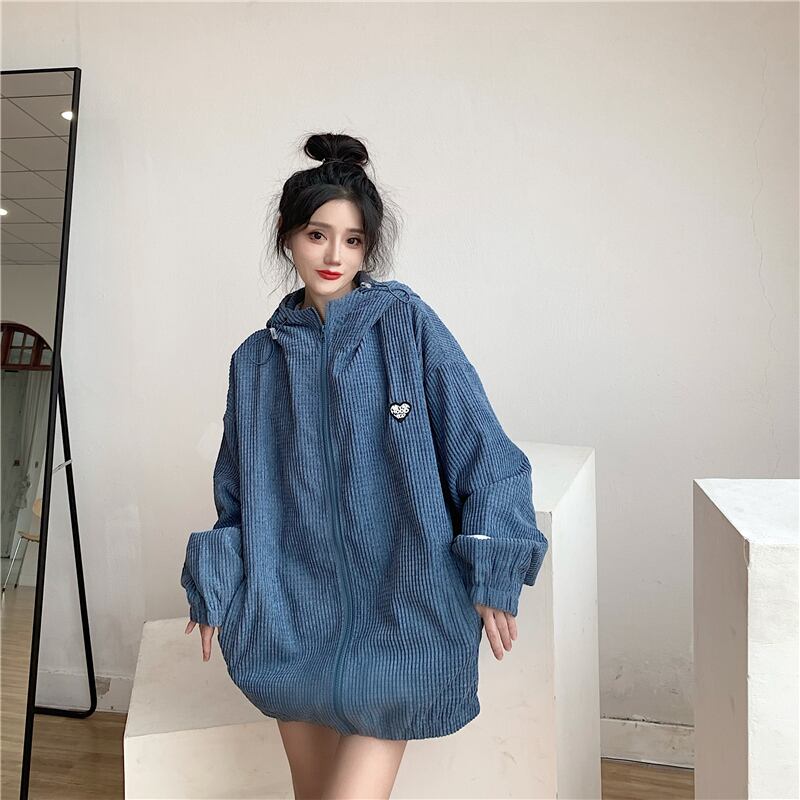 フードブルージャケット スプリング秋物ルーズトップス 春物 オータム コーデ marchs6719764998110