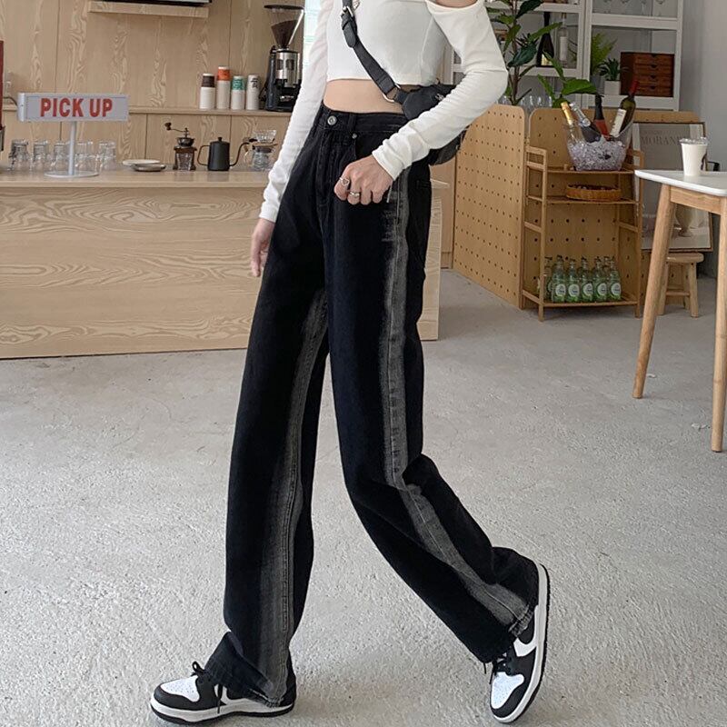 スプリング秋物ブラックジーンズ ルーズウェスト薄手ワイドレッグパンツ 春物 オータム ワイドパンツ ウエスト コーデ marchs675556264573