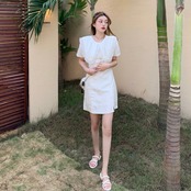 ホワイトワンピースレディース夏服スタイルウェスト薄手カラーAラインスカート 夏物 ウエスト コーデ marchs6710745178748