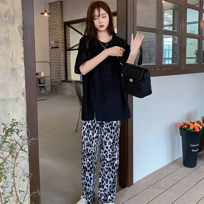 色:ホワイトトップ,ブラックトップ,ヒョウ柄ワイドレッグパンツ