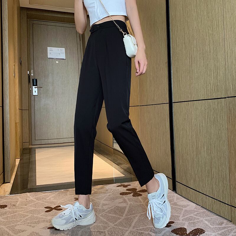 ブラックパンツ スプリング秋物韓国ファッションルーズハイウェストウェストスリムカジュアル 春物 オータム スタイル ウエスト コーデ marchs671659738716