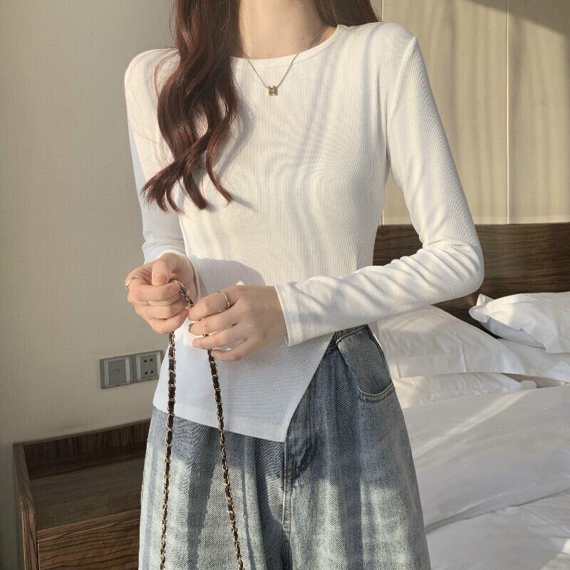 スプリング秋物スリムホワイトTシャツシャツ ゆったりトップス ロング 春物 オータム 長袖 コーデ marchs6772619298647