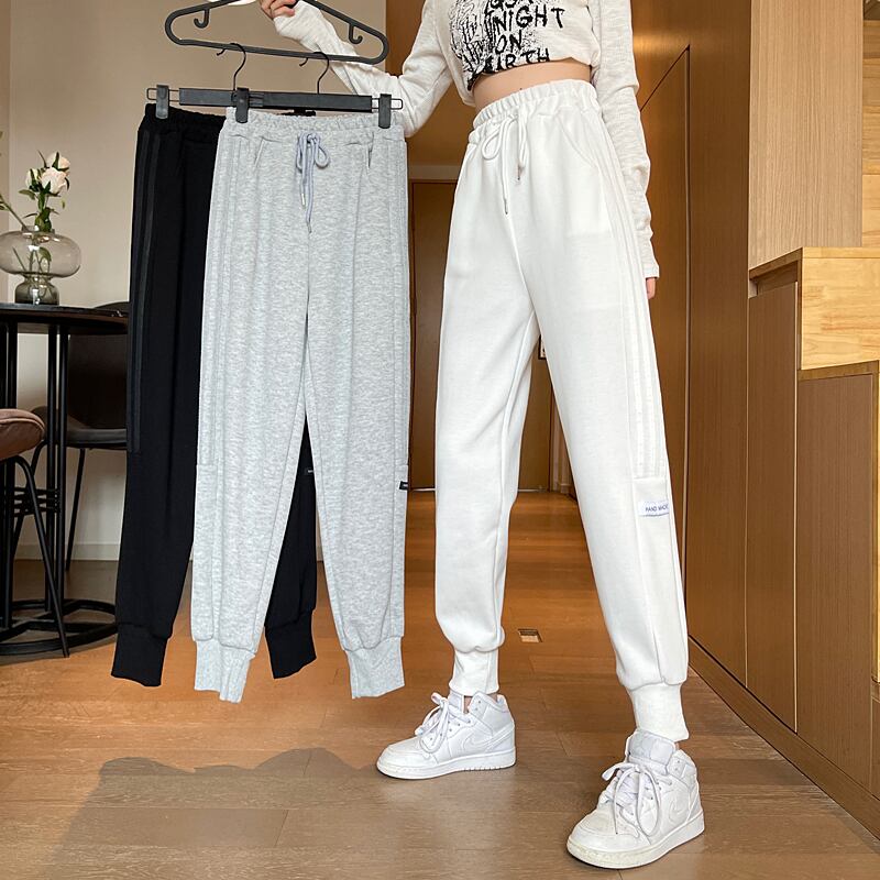 スプリング秋物韓国ファッションギャザーホワイトルーズハイウェストウェスト薄手パンツ カジュアル 春物 オータム スタイル ウエスト コーデ marchs6766611120232