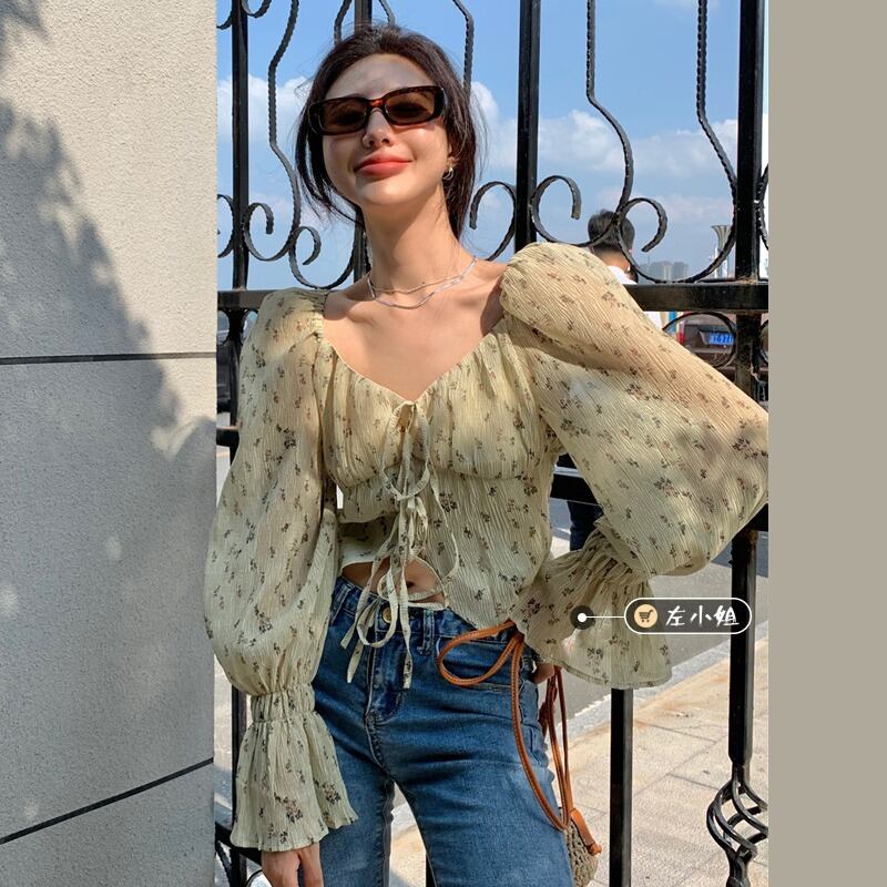 スタイルシャツ スプリング秋物薄手シフォンフローラルトップス ロング 春物 オータム 花柄 長袖 コーデ marchs678313509313