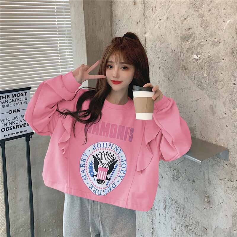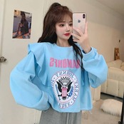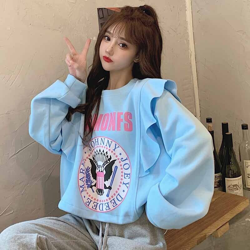 ブルーラウンドネックセーター スプリング秋物ルーズ韓国ファッションスタイルショートNEW 春物 オータム Oネック コーデ marchs6768557370062