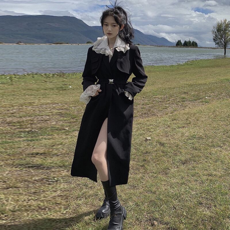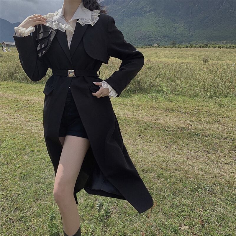 ブラックジャケット スプリング秋物スタイルコート 春物 オータム ミドル丈 コーデ marchs6793820194553