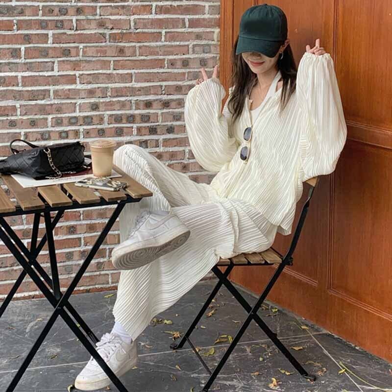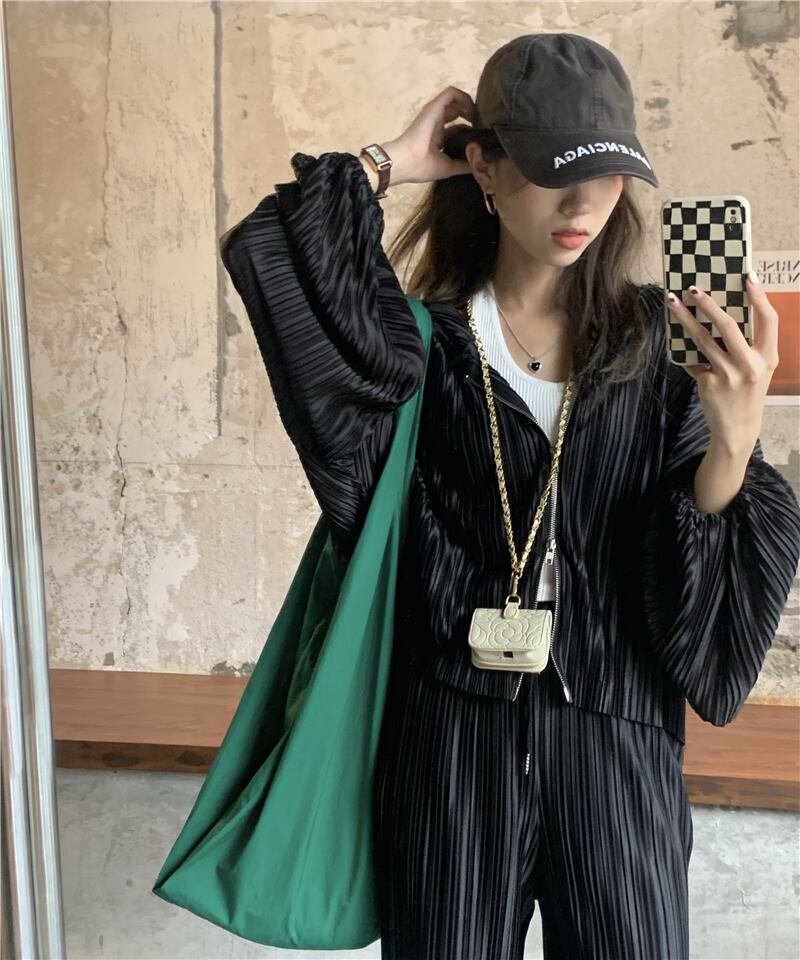 色:アプリコットコート,アプリコットワイドレッグパンツ,黒いジャケット,黒のワイドレッグパンツ
