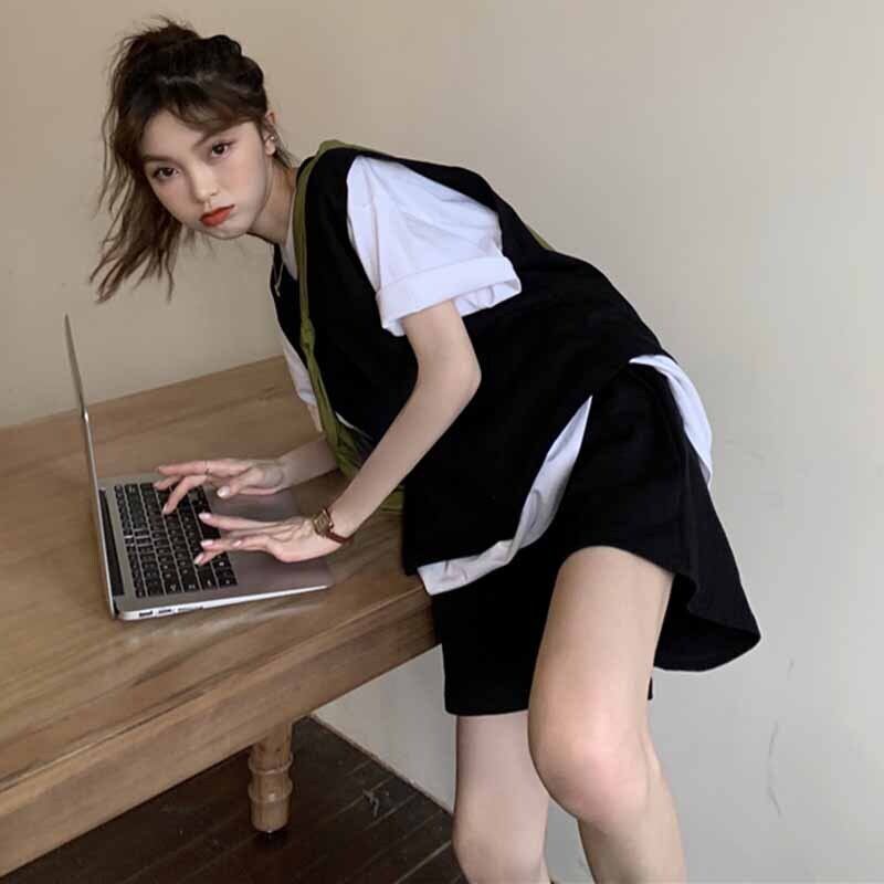 色:3217ホワイトプリントTシャツ,グレーベスト+ショーツ,ブラックベスト+ショーツ,ブルーベスト+ショーツ