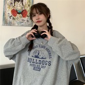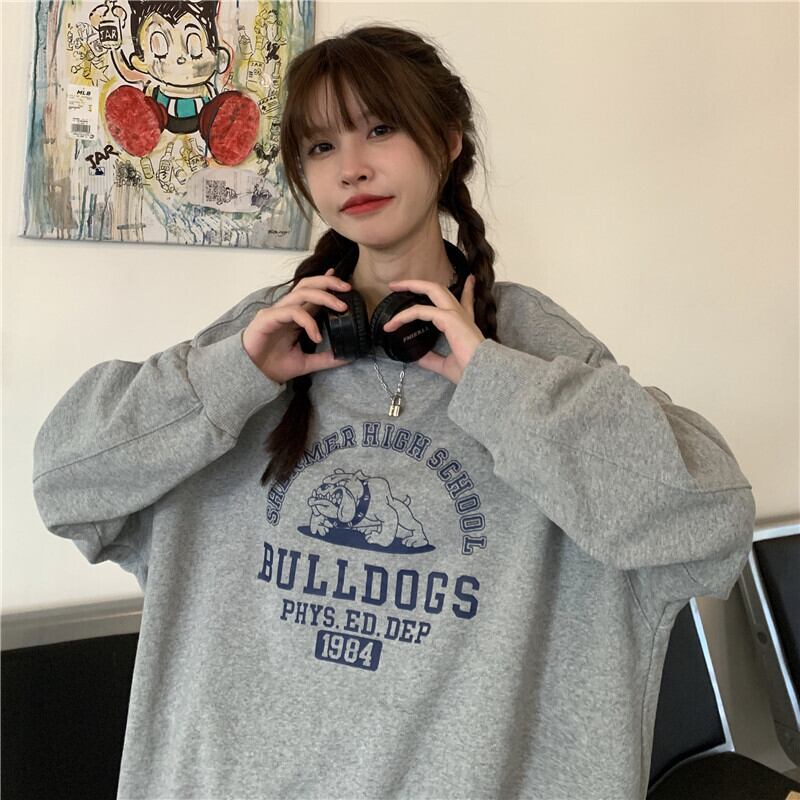 ホワイトラウンドネックセーター スプリング秋物薄手韓国ファッションルーズオーバーサイズトップス ロング 春物 オータム Oネック 長袖 コーデ marchs6792606240611