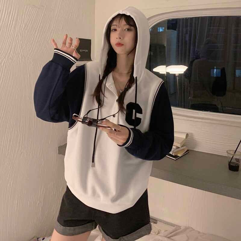 フードセーター スプリング秋物カラールーズカジュアルトップス ロング 春物 オータム ステッチ 長袖 コーデ marchs6727914846223