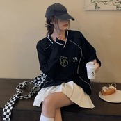 スプリング秋物スタイルルーズブラウス VネックTシャツ薄手 ロング 大人ガーリー スウィート キュート カジュアル 春物 オータム 長袖 コーデ marchs6717788605015