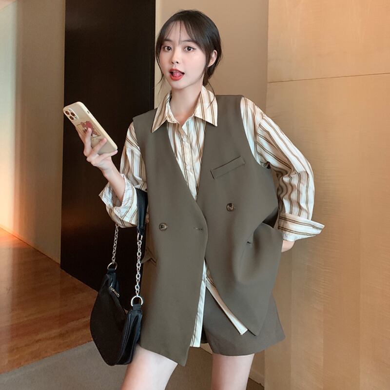 色:コーヒーシャツ,グレーのシャツ,コーヒーベスト,黒のベスト