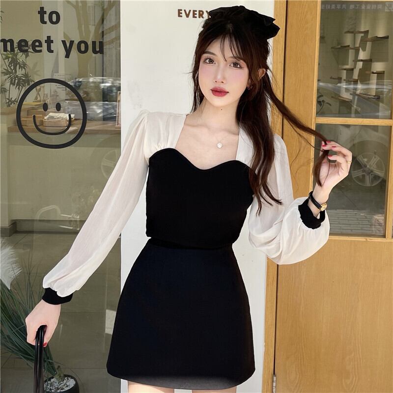ニット スプリング秋物薄手スリム長袖スリーブトップス ワンピース ロング 春物 オータム スクウェア コーデ marchs6753106502965