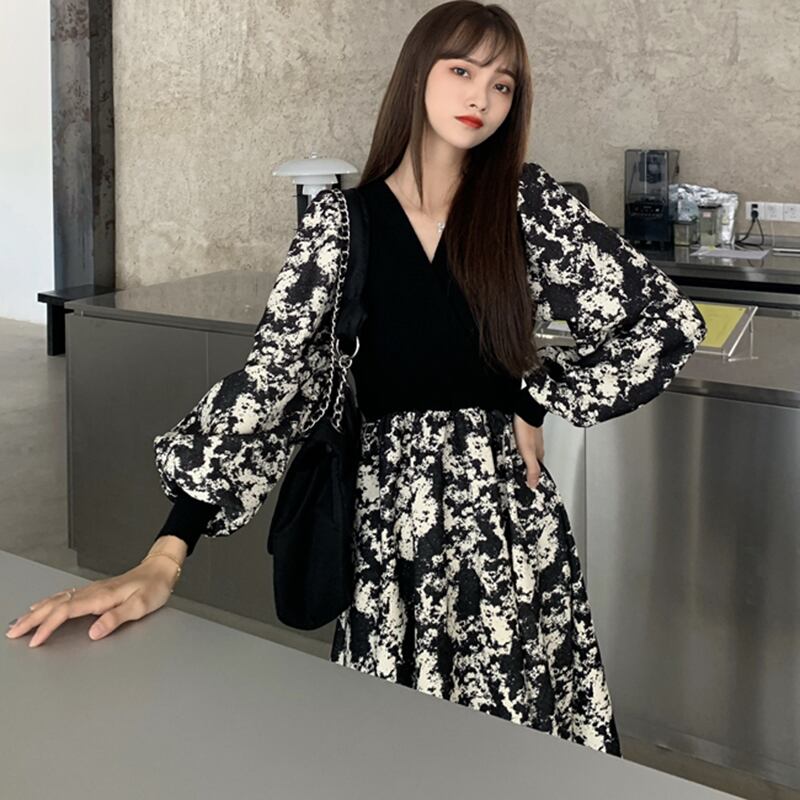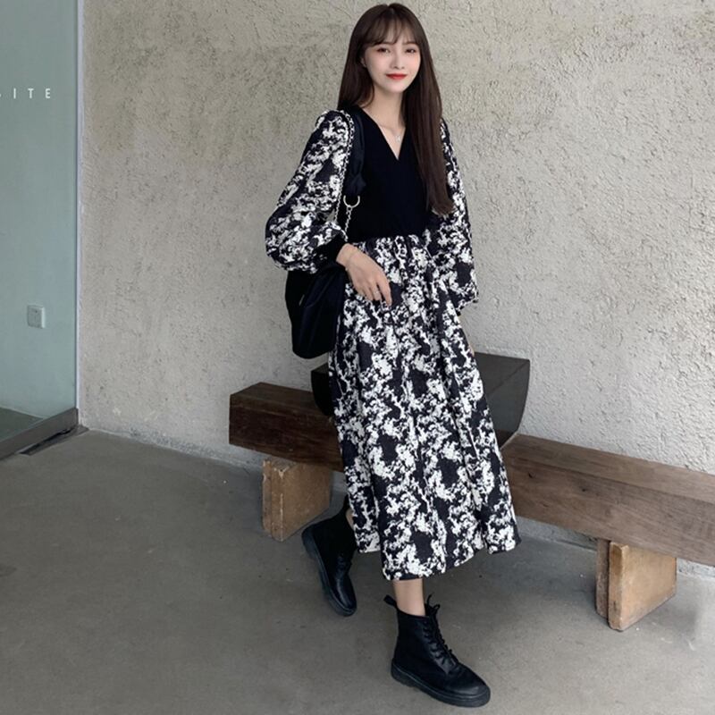 ワンピーススプリング秋物スタンダードロングフローラルスカート レトロ 春物 オータム 花柄 コーデ marchs6793222922712