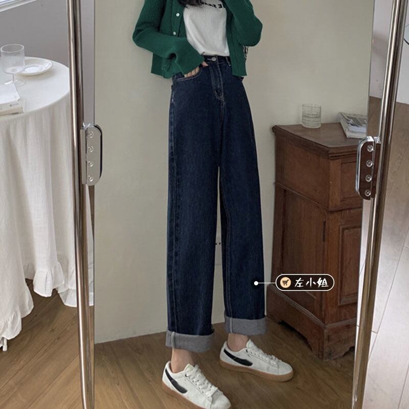 スプリング秋物韓国ファッションスタンダードパンツ ルーズハイウェスト薄手ジーンズ レトロ 春物 オータム ウエスト コーデ marchs6761575231711