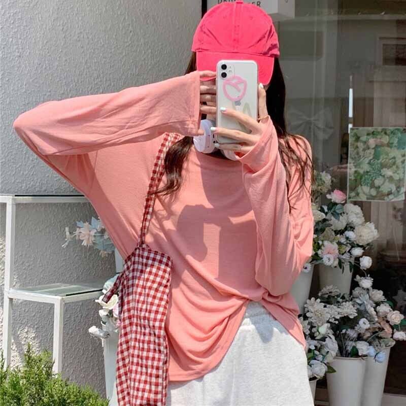 スプリング秋物韓国ファッションホワイト薄手ルーズ ロング 春物 オータム Tシャツ スタイル 長袖 コーデ marchs6714734675229