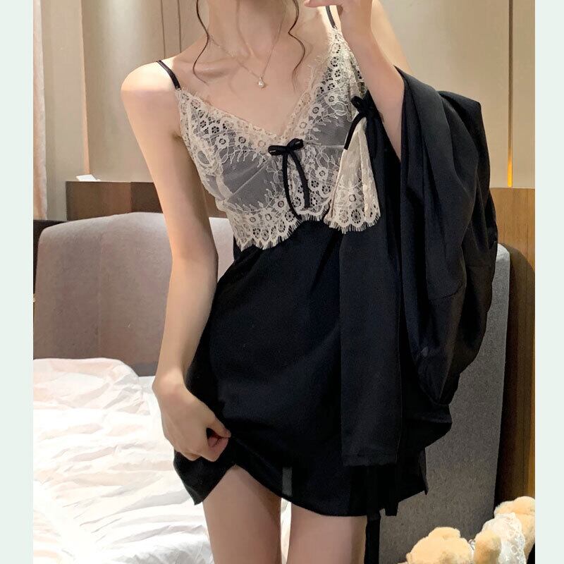 レディース夏服薄手ブラックレースサテン 夏物 ピュア ワンピース コーデ marchs6713612521815