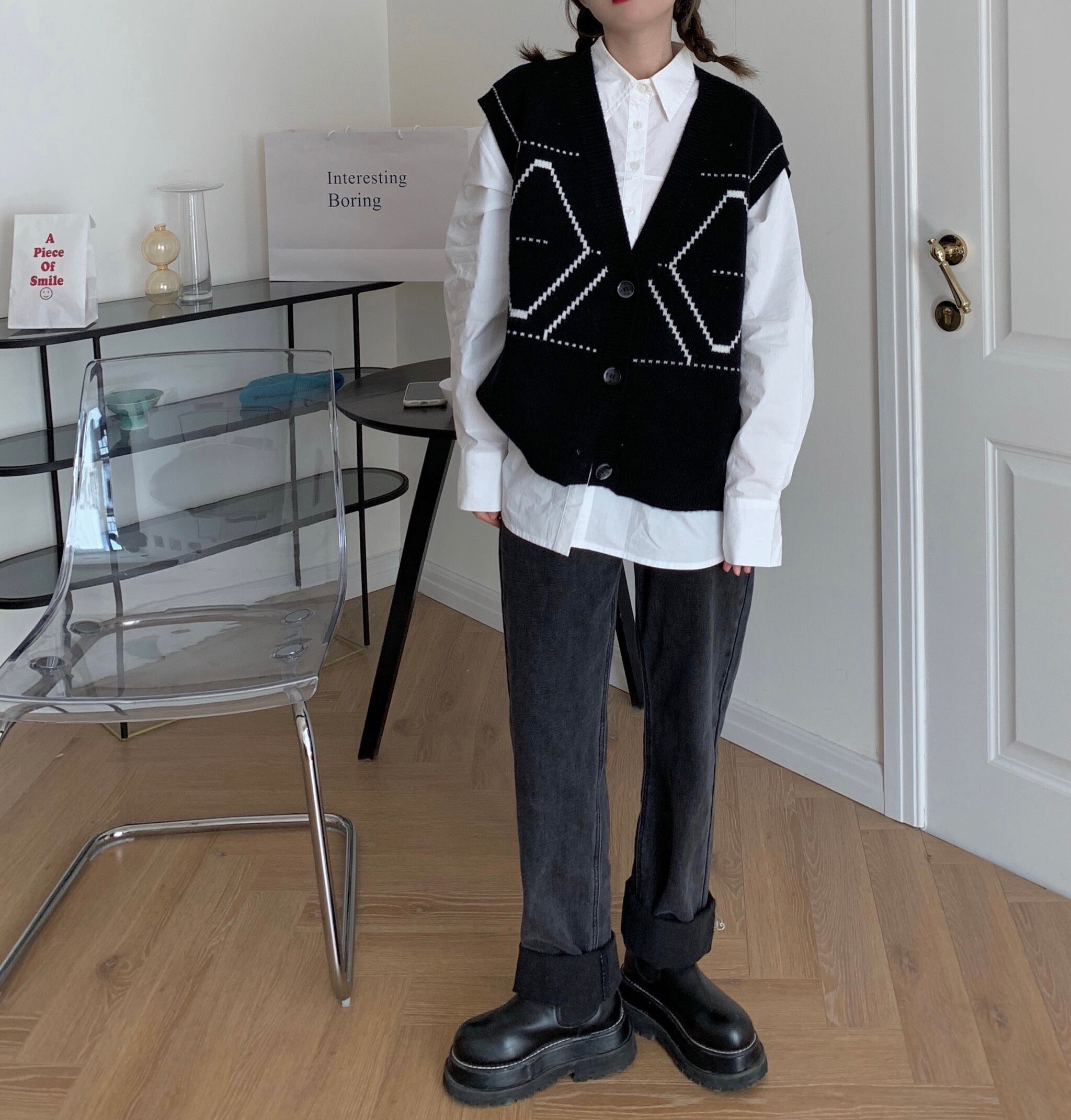色:黒のベスト,白のシャツ