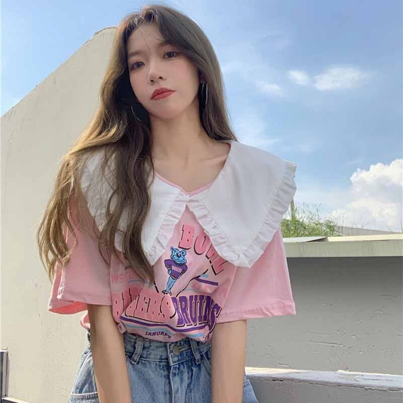 カラーTシャツ夏服スタイルコート ピンク 夏物 コーデ marchs672592026884