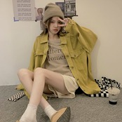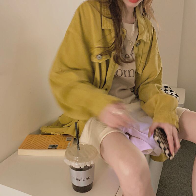 スプリング秋物韓国ファッションルーズスタンダードカーディガンイエロージャケット レディース レトロ 春物 オータム コーデ marchs6733895779369
