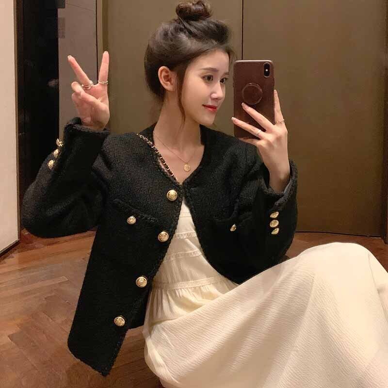 ルーズブラックジャケット スプリング秋物韓国ファッションワンピースセーター ロング 春物 オータム 長袖 コーデ marchs6773555128569