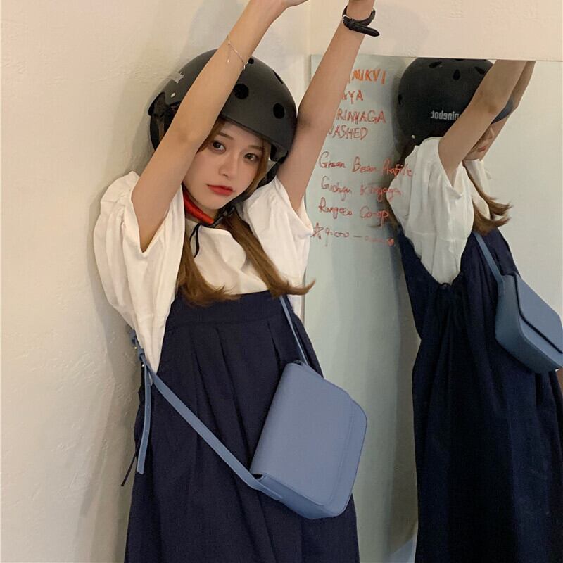 色:ホワイトトップ,ブルートップ,アプリコットストラップドレス,ブルーストラップスカート