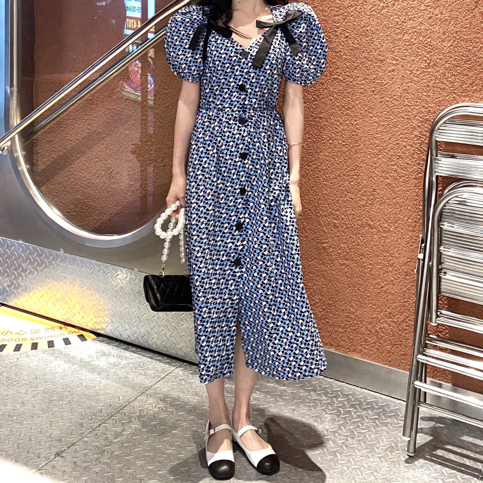 Vネックフローラルスリーブワンピースレディース夏服スカート 夏物 花柄 コーデ marchs6763799770069