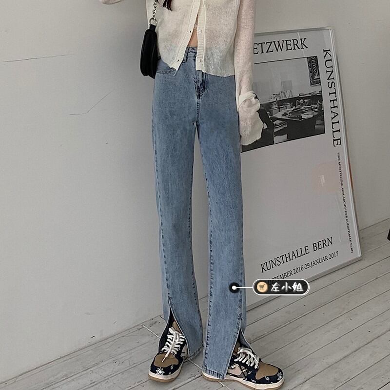 ジーンズ スプリング秋物ブラックハイウェストルーズパンツ レッド 春物 オータム ウエスト コーデ marchs6744532361452