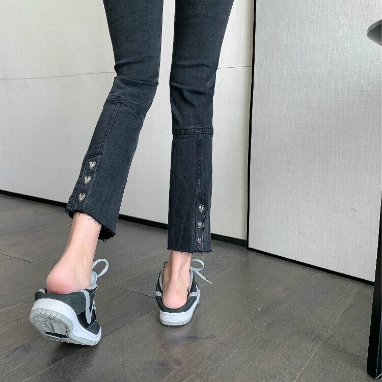 ブラックジーンズ スプリング秋物スタイルスリムハイウェストウェストロングパンツ 春物 オータム ウエスト コーデ marchs6756422260353
