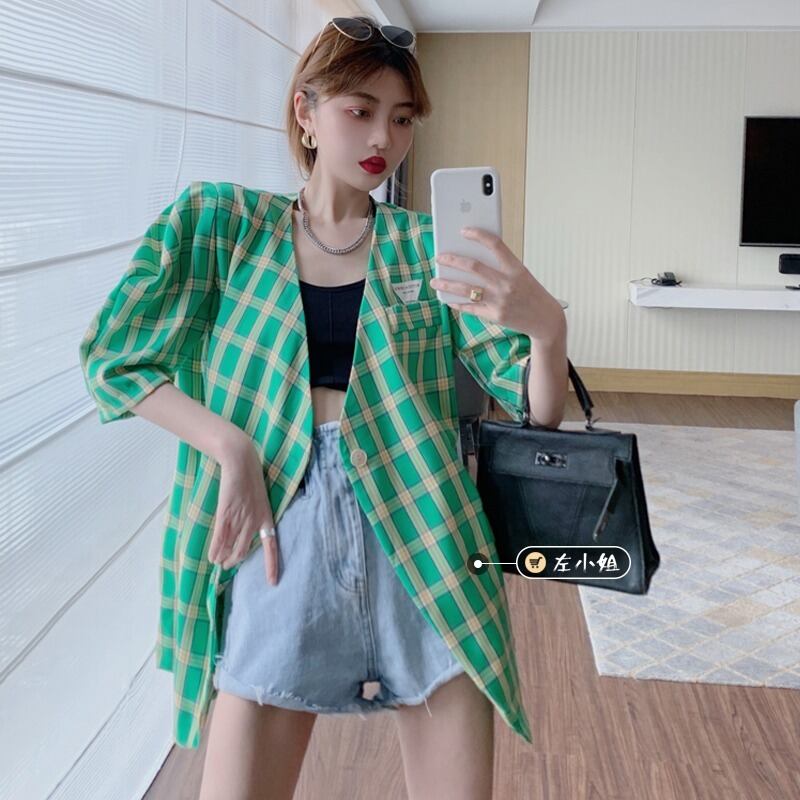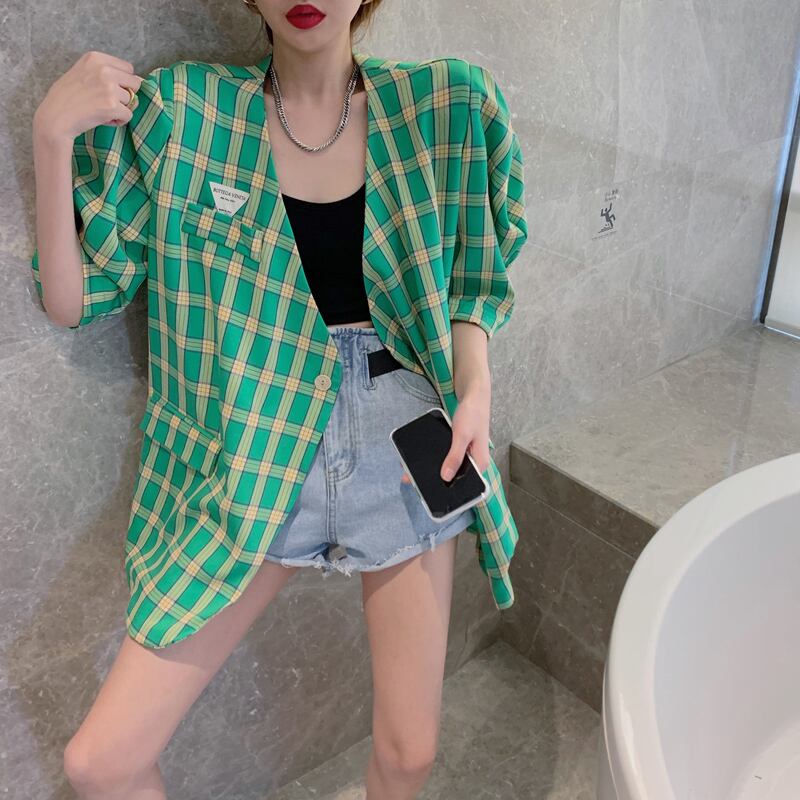 スタンダード格子柄ジャケット レディース夏服ルーズスリーブトップス NEW レトロ ストリート 夏物 コーデ marchs674378895295