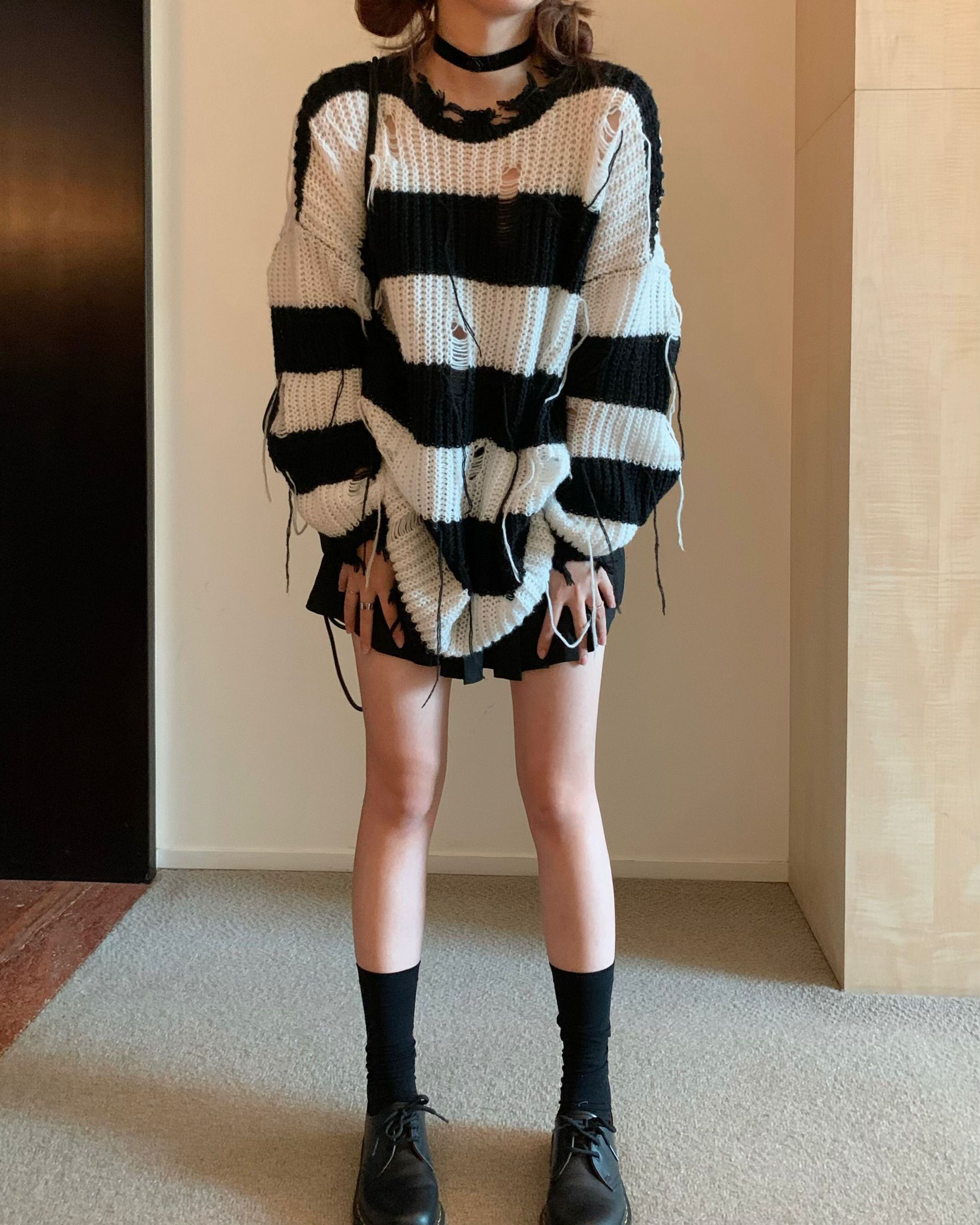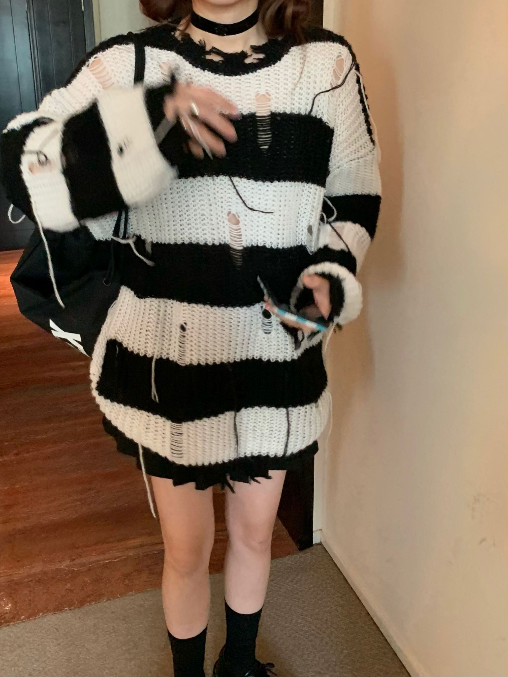 ストライプセーター スプリング秋物スタイルルーズニットトップス 春物 オータム コーデ marchs673247447564