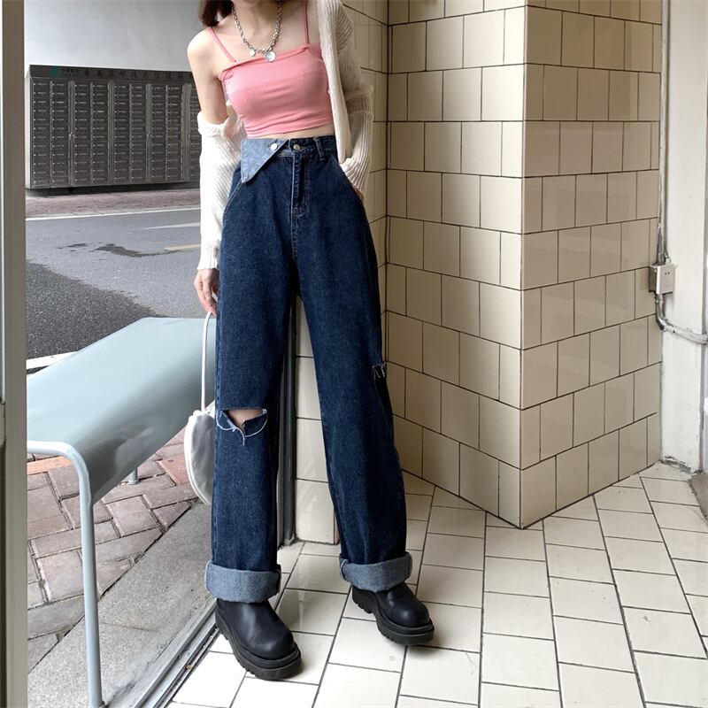 ジーンズ スプリング秋物ハイウェスト薄手スタンダードルーズパンツ レトロ 春物 オータム ウエスト コーデ marchs6756917593727