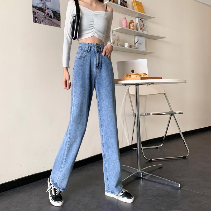 ジーンズ スプリング秋物韓国ファッションルーズハイウェストパンツ スリム 春物 オータム スタイル ウエスト コーデ marchs6739235113794