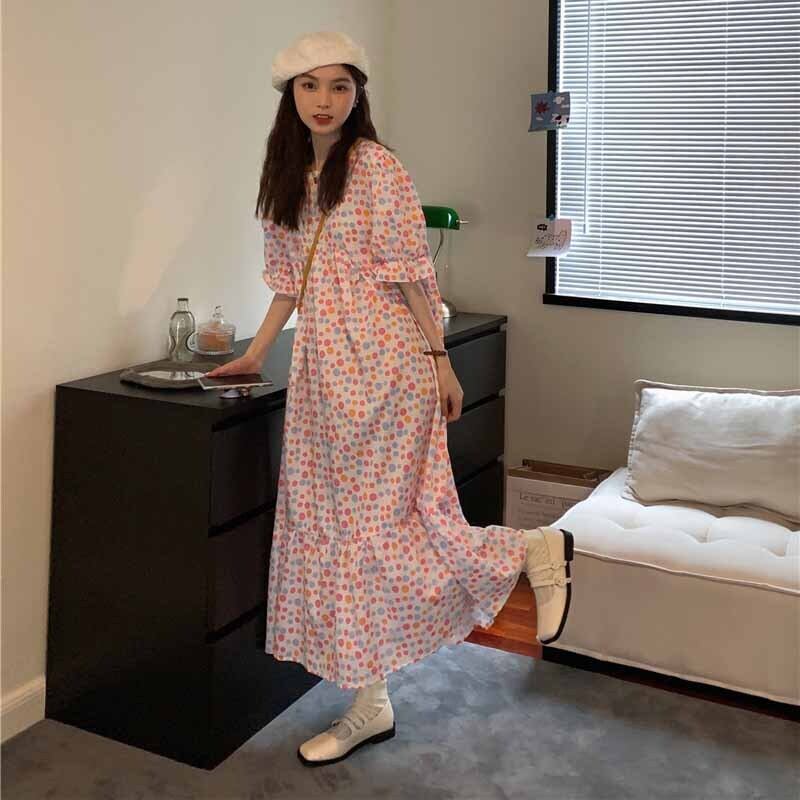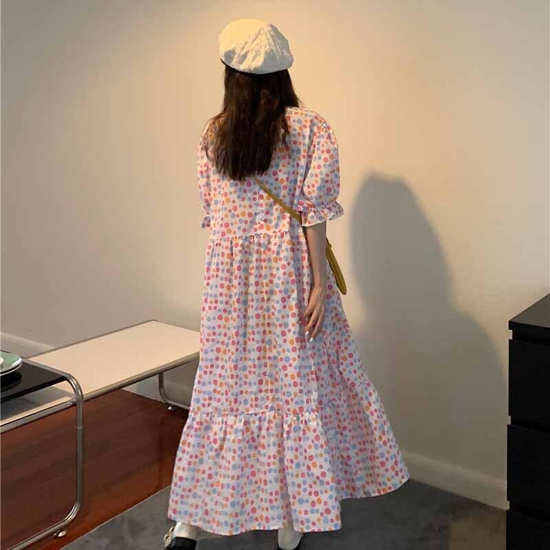 水玉スリーブワンピースレディース夏服ルーズロングスタイルスカート ストリート 夏物 コーデ marchs6720544203171