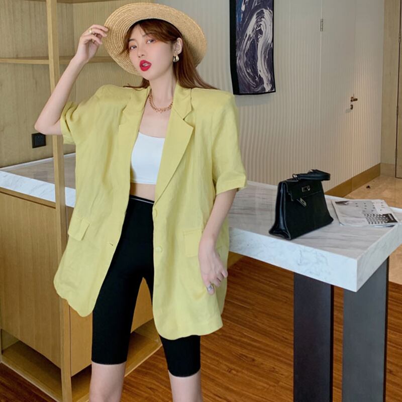 夏服ルーズジャケット バックイエロー薄手レディース コットン 夏物 コーデ marchs6745567389920