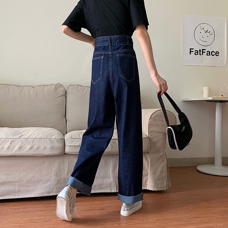 ウェストバックルジーンズ スプリング秋物薄手ハイウェストパンツ スタンダードロング レトロ 春物 オータム ウエスト コーデ marchs6750767015577