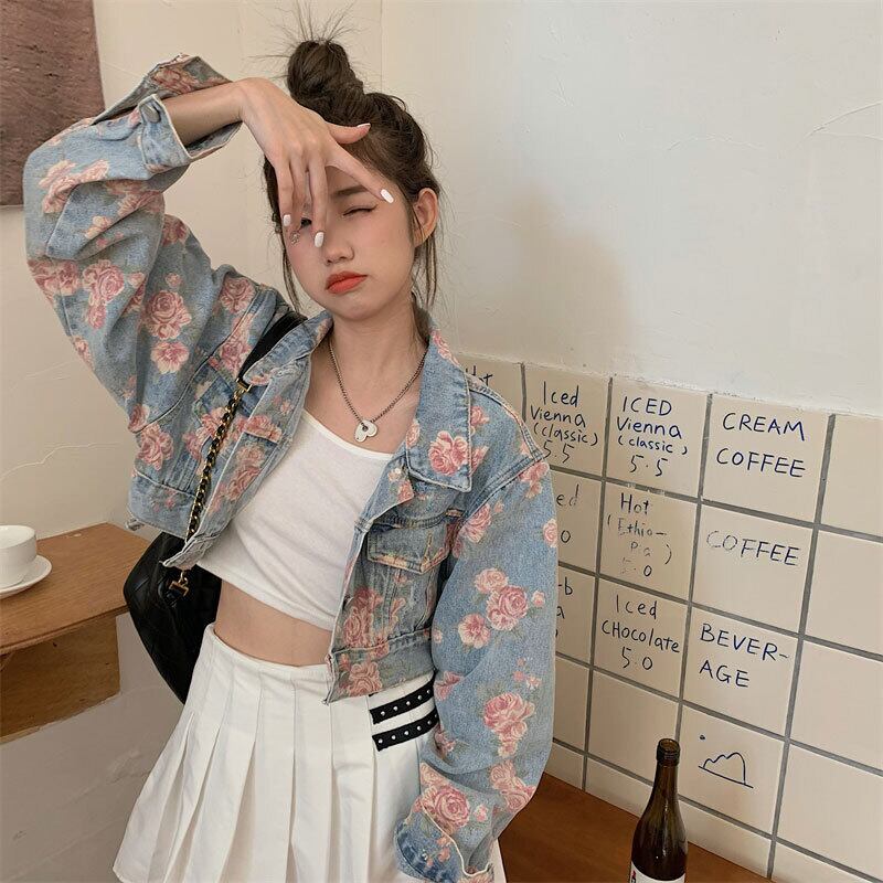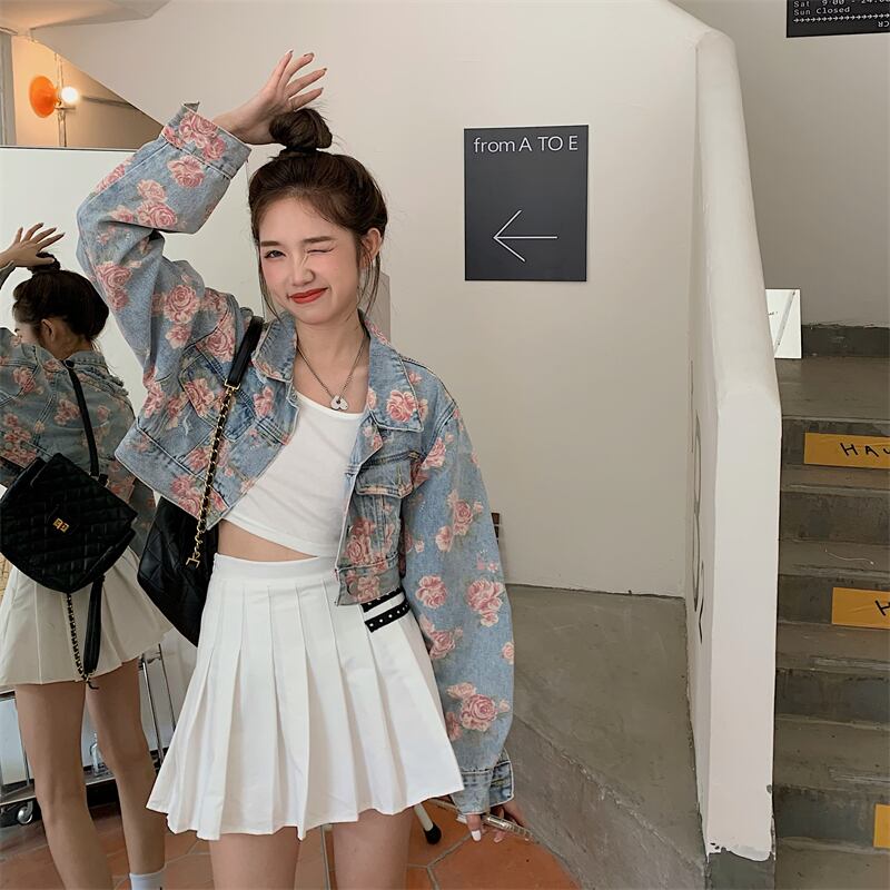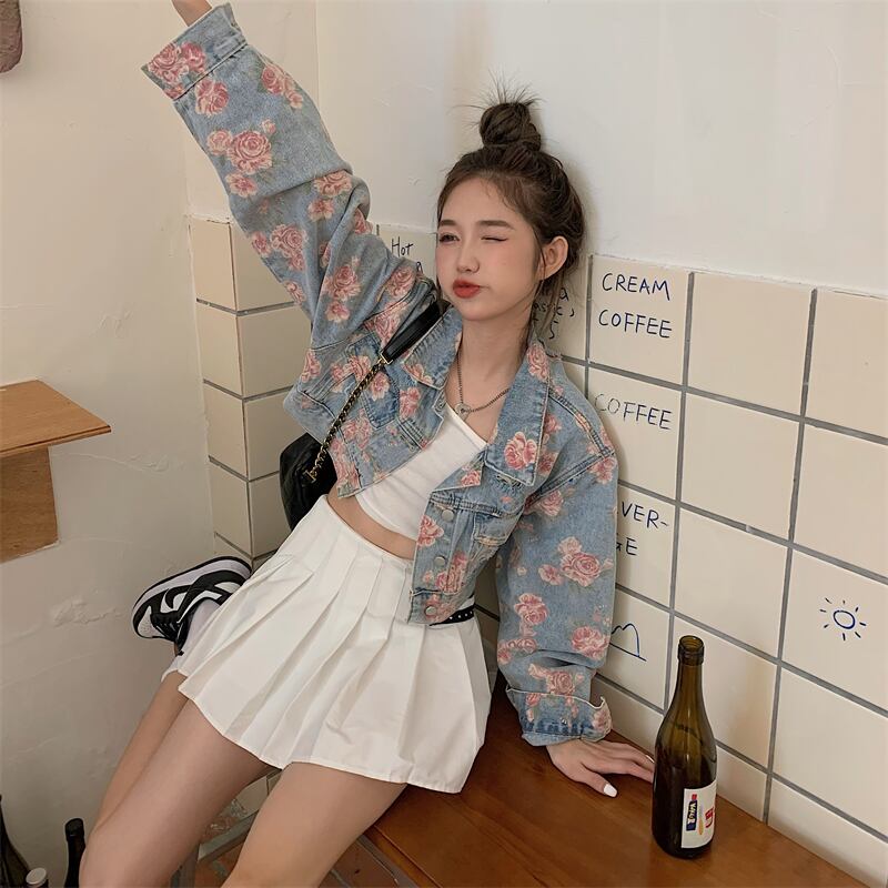 スプリング秋物韓国ファッションスタイルルーズショートプリント柄ジャケット 春物 オータム コーデ marchs6742654937847
