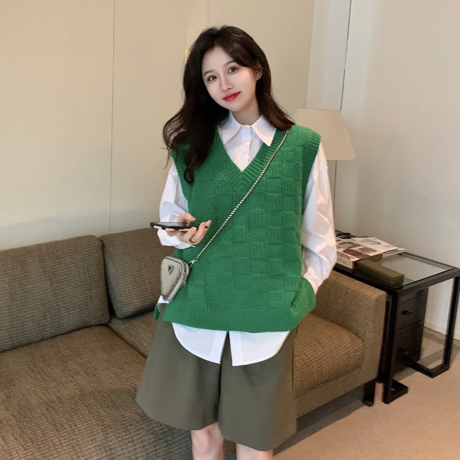 色:グレーのベスト,グリーンベスト,ブルーストライプシャツ,白のシャツ