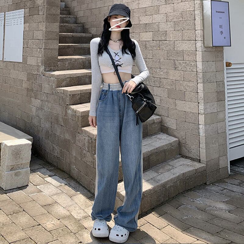 ウェストルーズワイドレッグジーンズ スプリング秋物スタンダードパンツ レトロ ストリート 春物 オータム ワイドパンツ ステッチ ウエスト コーデ marchs6751740756139