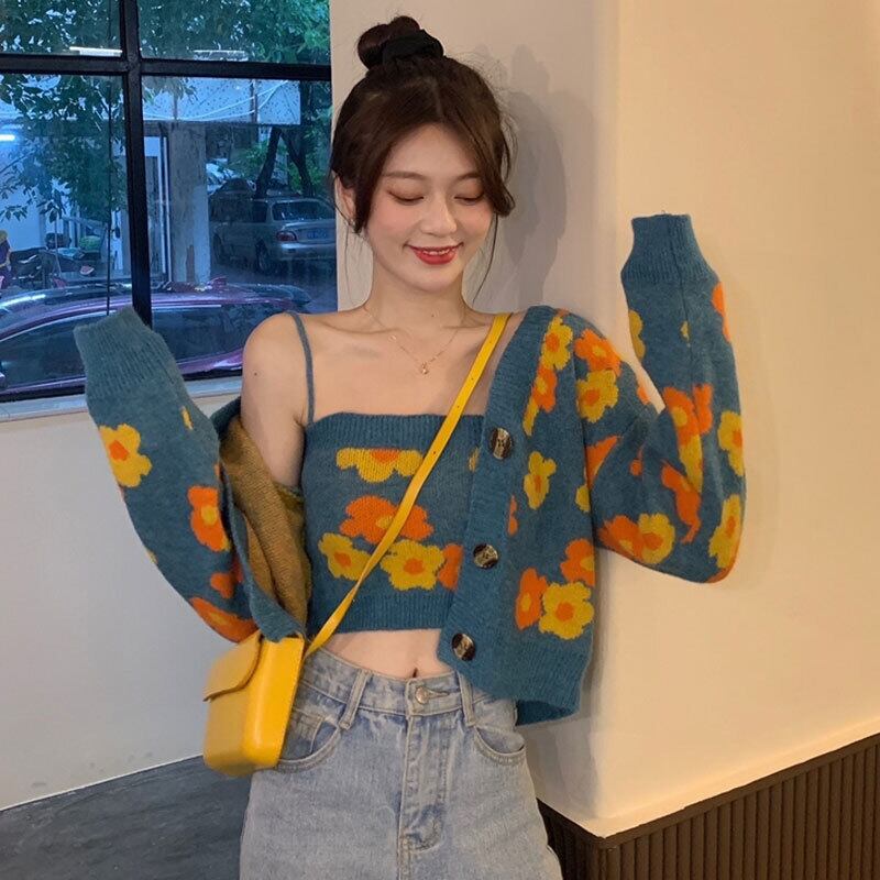 色:ブルーのカーディガンジャケット,ベージュカーディガンジャケット,青いスリング,アプリコットスリング