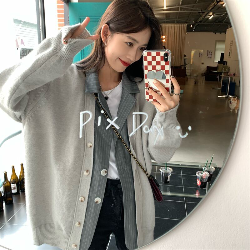 ニットセーター カーディガンジャケット ツーピースフェイク スプリング秋物カラー 春物 オータム ステッチ コーデ marchs676444008639
