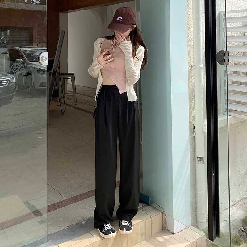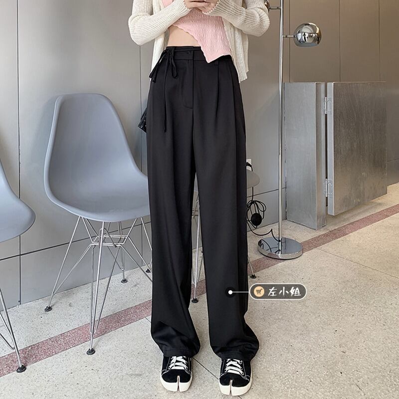 ブラックシフォンパンツ スプリング秋物薄手ルーズワイドレッグ 春物 オータム ワイドパンツ コーデ marchs6774297784784