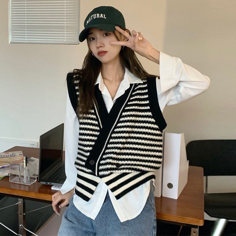 色:白のシャツ,黒と白のストライプのベスト,グリーンストライプベスト