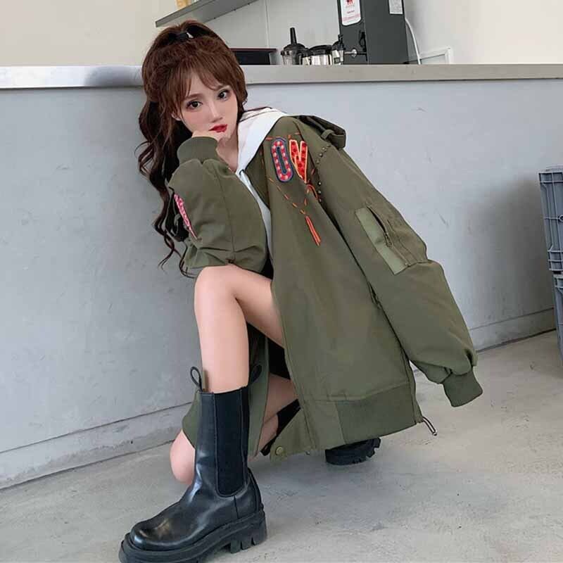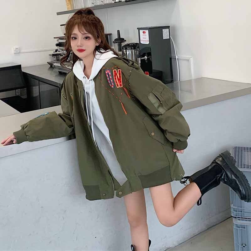 スプリング秋物韓国ファッションパターンカラールーズグリーンジャケット NEW 春物 オータム ステッチ ボーイズ コーデ marchs6769845326095