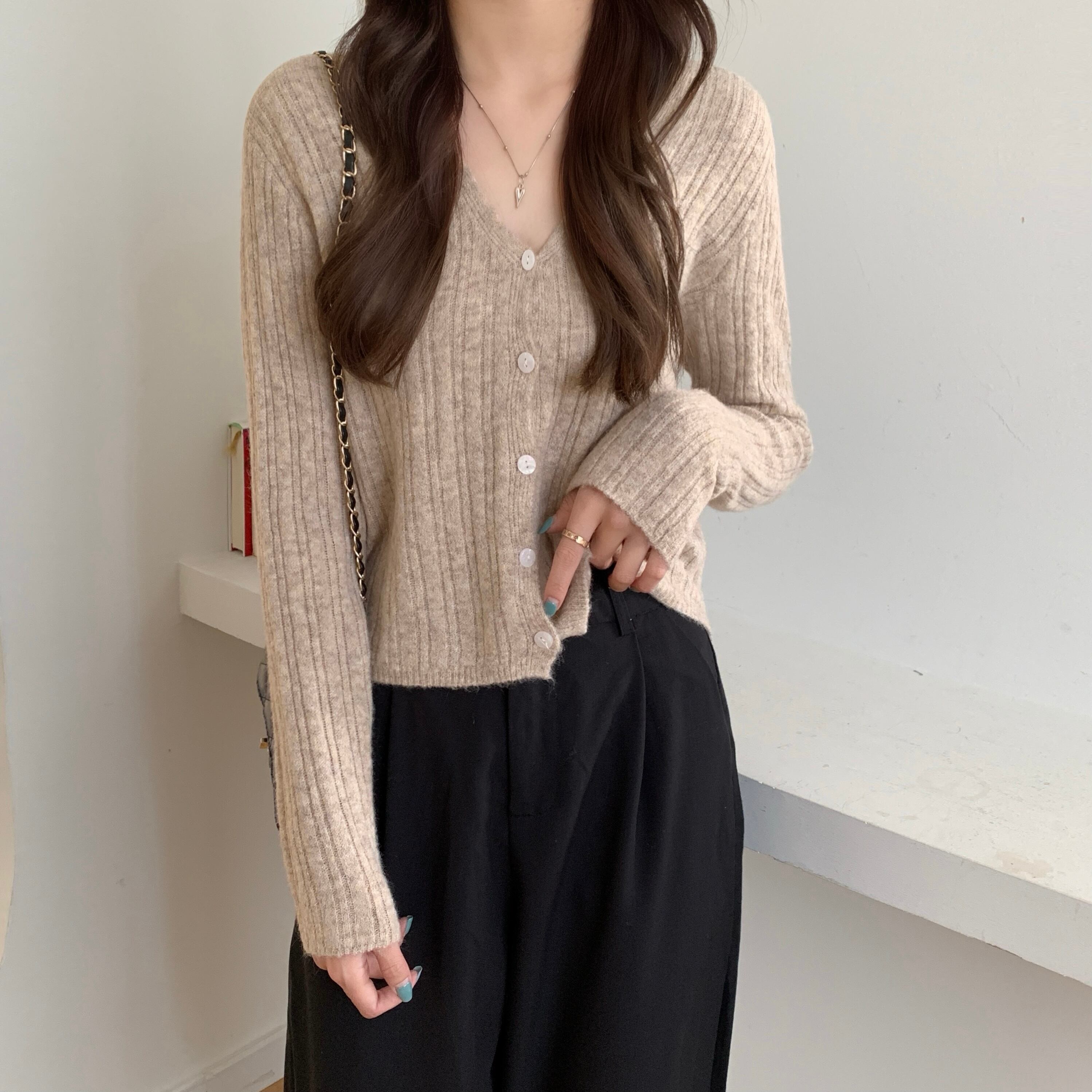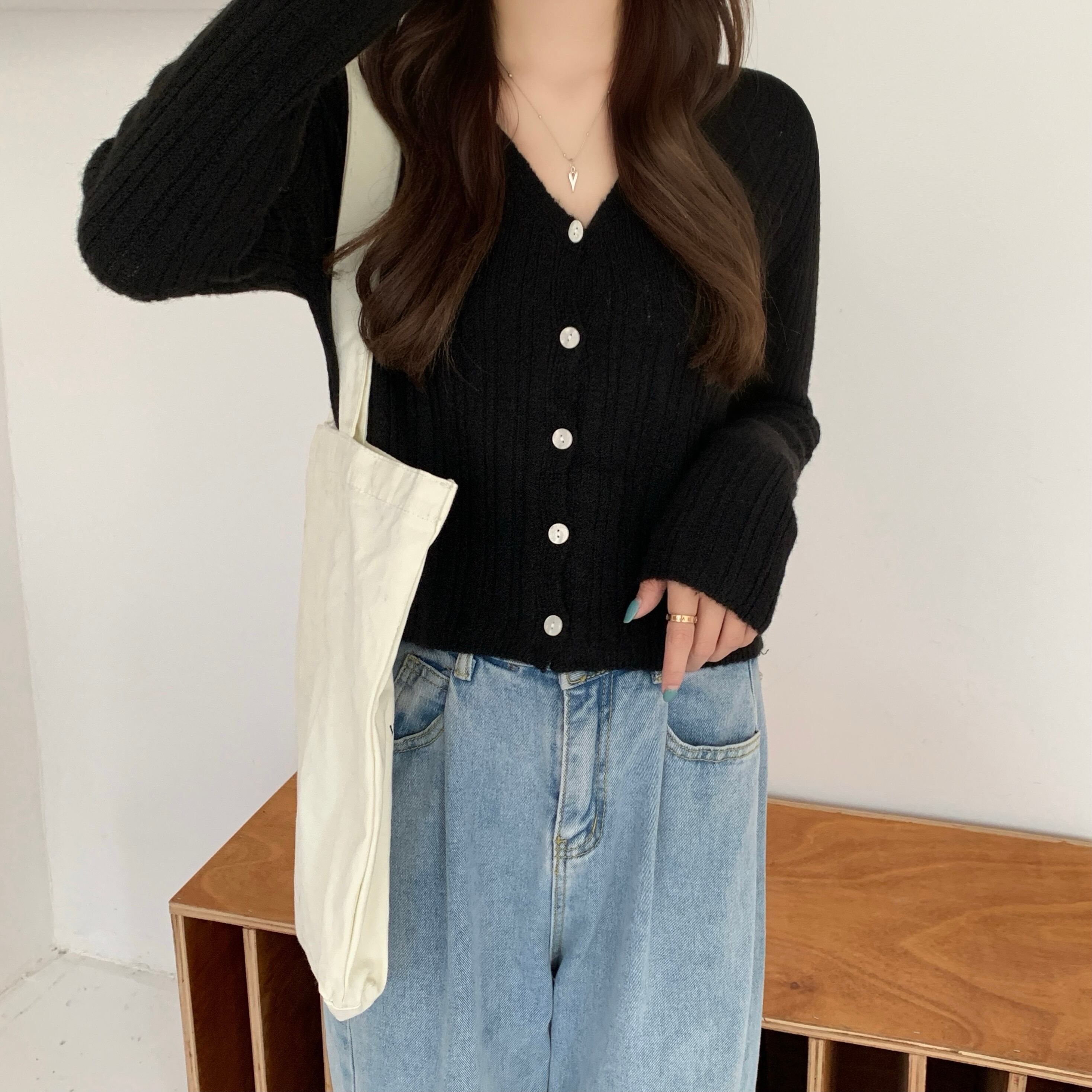 ブラックニットカーディガンスプリング秋物セーター ルーズ薄手ショートショールジャケット ロング 春物 オータム 長袖 コーデ Marchs13491659849