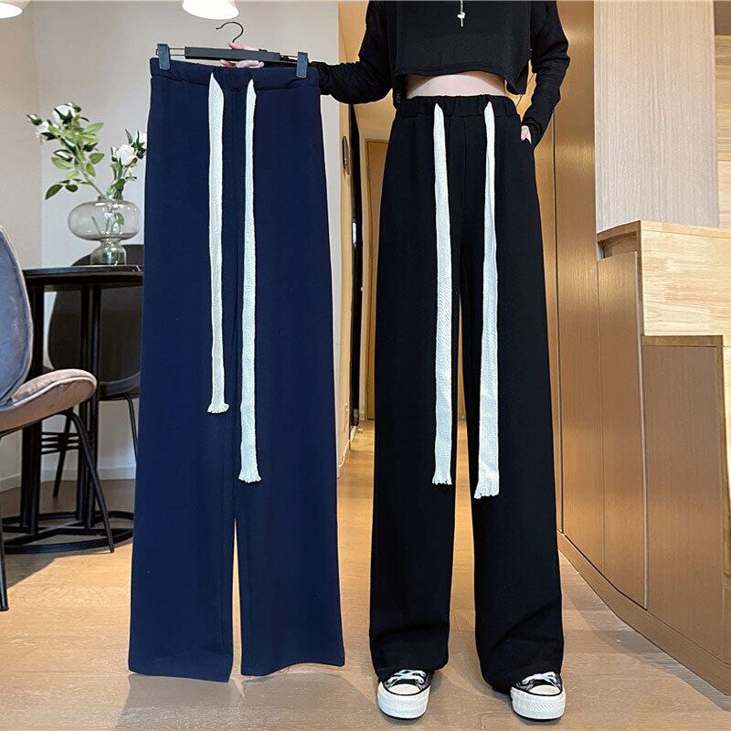 スプリング秋物ブラックパンツ ハイウェストウェストカジュアルルーズ 春物 オータム ウエスト コーデ marchs6736274895769