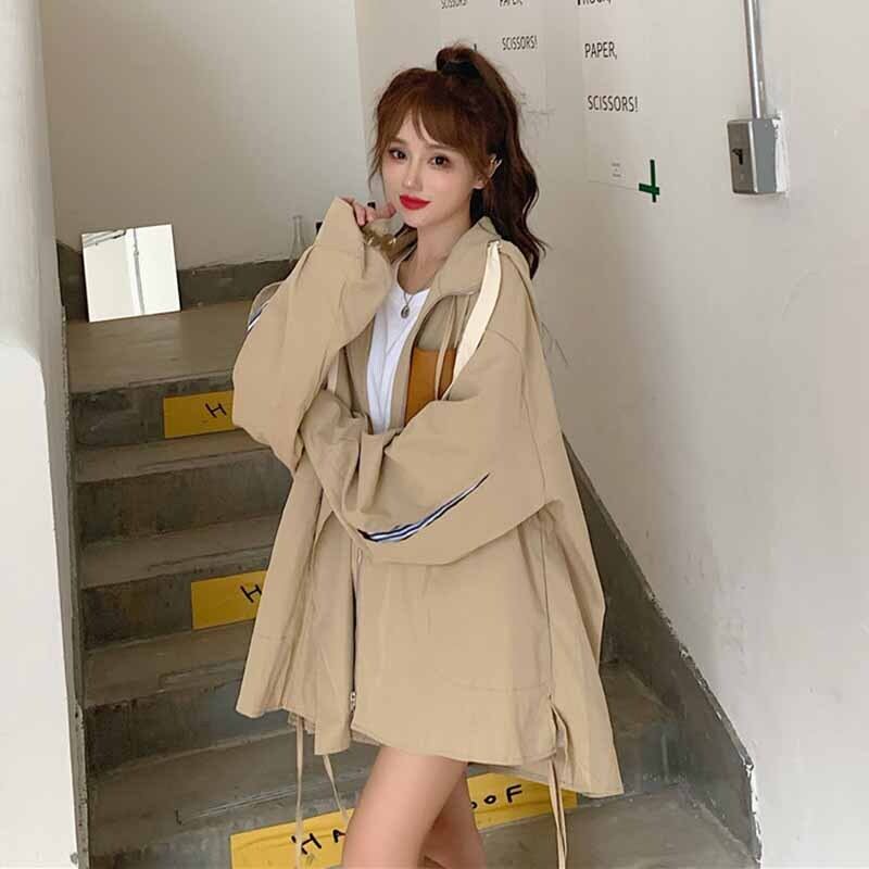 ジャケット スプリング秋物韓国ファッションスタイルルーズカーキコート 春物 オータム ミドル丈 コーデ marchs6787624741021