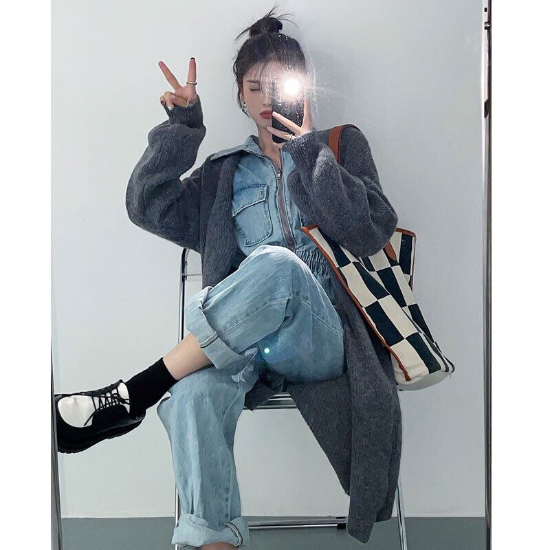 ブルーロングセーター コート スプリング秋物スタンダードNEWスタイルニットカーディガン レトロ 春物 オータム コーデ marchs6792603696271