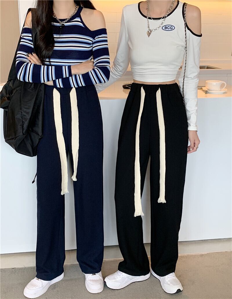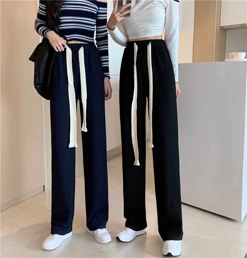 ウェストワイドレッグパンツ スプリング秋物ルーズ薄手ブラックカジュアルロング 春物 オータム ワイドパンツ ウエスト コーデ marchs6742408162327
