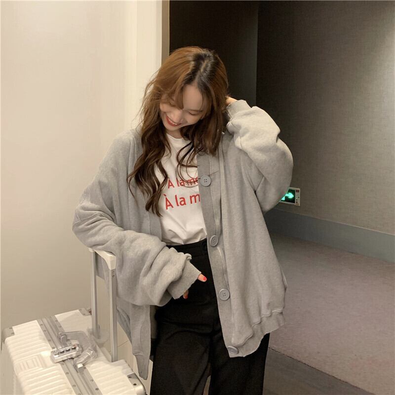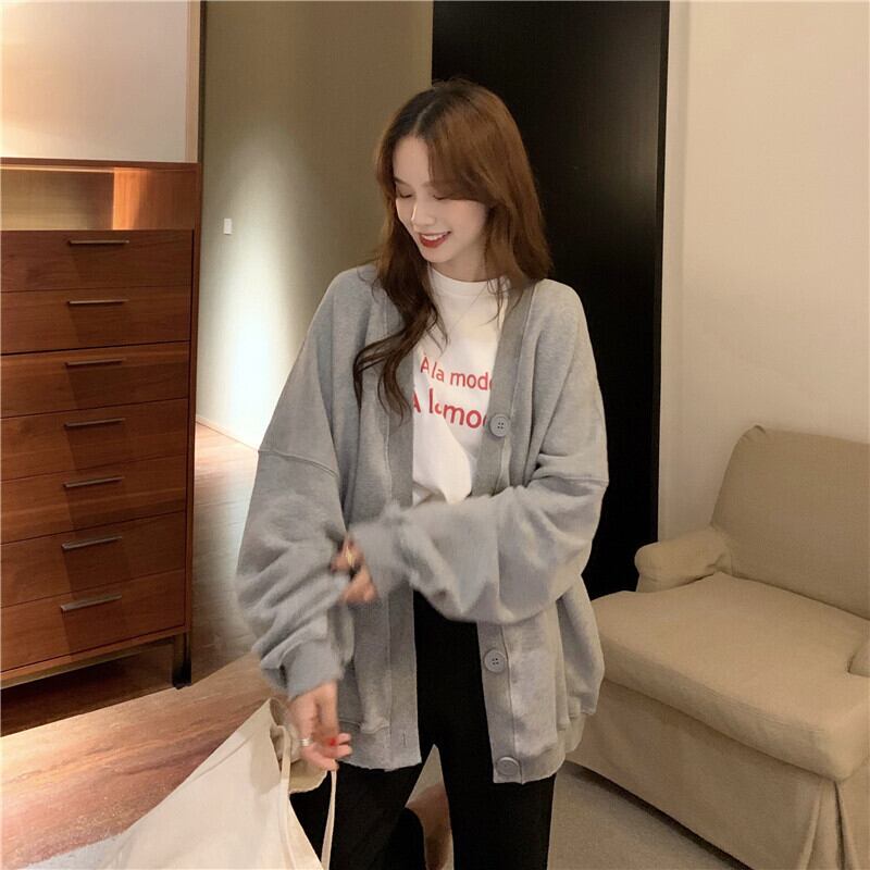 グレーセーター カーディガン秋物韓国ファッションルーズジャケット トップス ロング オータム ボーイズ スタイル 長袖 コーデ Marchs64049138699